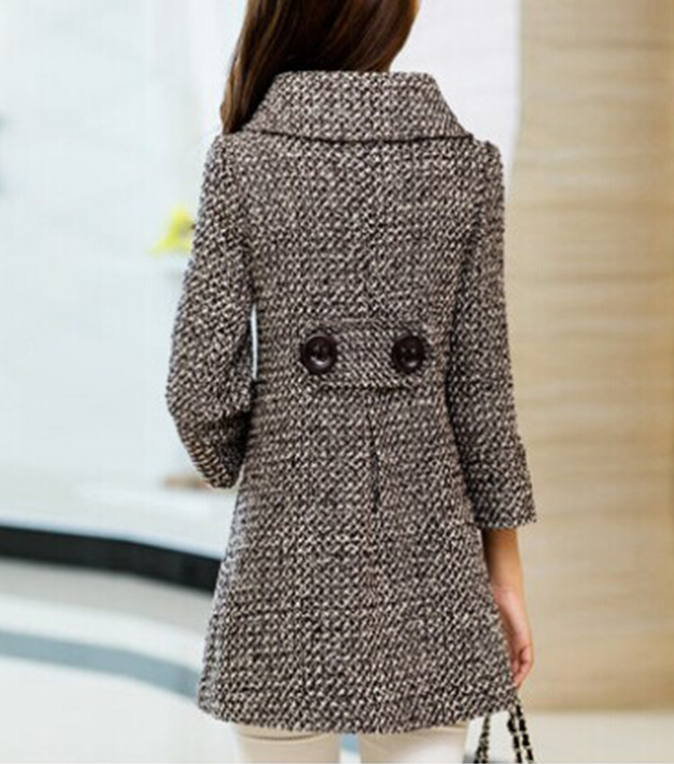 2014秋冬新款加厚毛呢大衣韓版品牌女裝修身格子中長呢料外套批發149.00RMB