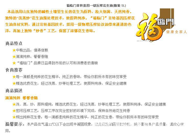 清棟糧油商貿供應5L裝福臨門壓榨一級花生油