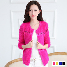 2014秋冬新款 韓版女式針織開(kāi)衫 條紋馬海毛馬卡龍毛衣 女裝外套45.00
