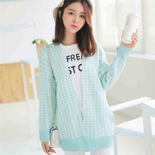 2014秋季新款女 韓版格子針織開(kāi)衫 蝙蝠女式外套 外貿(mào)原單女裝45.00