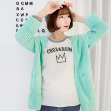 爆款秋季新款 毛衣女 韓版純色拼接休閑針織衫開(kāi)衫 原單女裝外套33.00