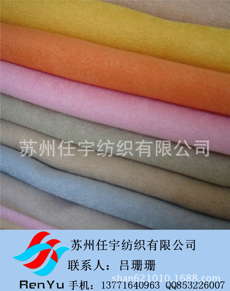 本公司專業(yè)生產(chǎn)麂皮絨系列的家紡與服裝面料,日產(chǎn)麂皮絨10萬米。麂皮絨,其特點為布面毛感細膩類似動物毛皮,面料本身輕薄透氣,經(jīng)向麂皮絨(105D*150D、105D*200D、105D*300D、105D*400D、105D*600D)、緯向麂皮絨(75D*225D、75D*225*2、75D*160D、75D*180D)、針織麂皮絨、經(jīng)編麂皮絨(50D*75D),成品門幅:110CM—280CM。成品克重:110G/M2---260G/M2。以上各種產(chǎn)品可再次添加各種后整理如:仿水、壓花、復(fù)合TPU膜及T/C底布、透氣透濕、吸濕排汗、刮膠、印花、燙金等。此類產(chǎn)品均為我司主打產(chǎn)品,一直以來廣受國內(nèi)外新老客戶的認可。我們的宗旨是以過硬的品質(zhì)及合理的價格來滿足每一個客戶的需求。您的滿意是我們的追求,我將永遠堅持此理念真誠的為每一位客戶服務(wù)。各位至高無上的客戶朋友們,我們期待與您早日合作。我司常年承接各類國內(nèi)外訂單,并且已有自主進出口經(jīng)營權(quán),敬請廣大新老客戶來電咨詢洽談。