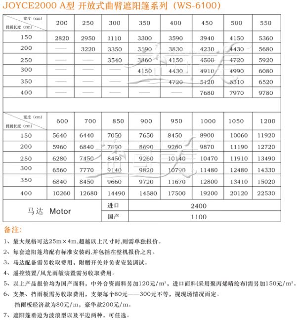 由于此種遮陽篷的特殊性,價格按面積計算,價格在200-800元/平方不等。詳情請致電公司。