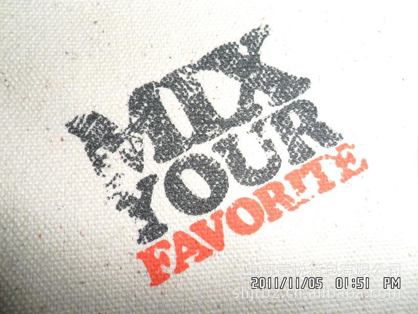 本款產品是16安上漿優質帆布,有一定的挺度。產品名稱】 100%純棉帆布袋【規格尺寸】 可根據客戶需要定制【產品顏色】 有多種布料可供選擇也可以訂做【布料規格】 布料厚度有8-24安可供選擇。【小訂量】 1000只起訂【交貨周期】 確認打樣后8-15周內出貨【印刷工藝】 印刷可采用絲印,熱轉印,繡花,燙鉆,等其它印刷工藝【產品用途】 作為企業的資料袋或產品包裝袋【廣告效果】 可做為購物袋反復使用/宣傳上海黃悅箱包有限公司歡迎你來電咨詢。