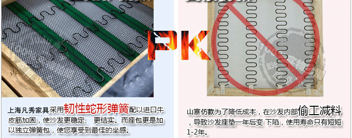 內(nèi)架是采用實(shí)木和人造板材框架結(jié)構(gòu),主要工藝是對(duì)木材進(jìn)行干燥,防蟲(chóng)蛀,防螨蟲(chóng)等特殊工藝處理,以及對(duì)每張沙發(fā)木架用量的把握,關(guān)鍵的是主要用料要有足夠承受力,每一張底架的用料都是經(jīng)過(guò)技術(shù)人員的嚴(yán)格挑選,而且沙發(fā)架關(guān)鍵部位(例如:扶手)的制作不僅要經(jīng)過(guò)特殊加固,更要由工作經(jīng)驗(yàn)豐富的技術(shù)人員親自操作。座面和背面的結(jié)構(gòu)是采用蛇簧或強(qiáng)力橡筋帶及高密度海綿。