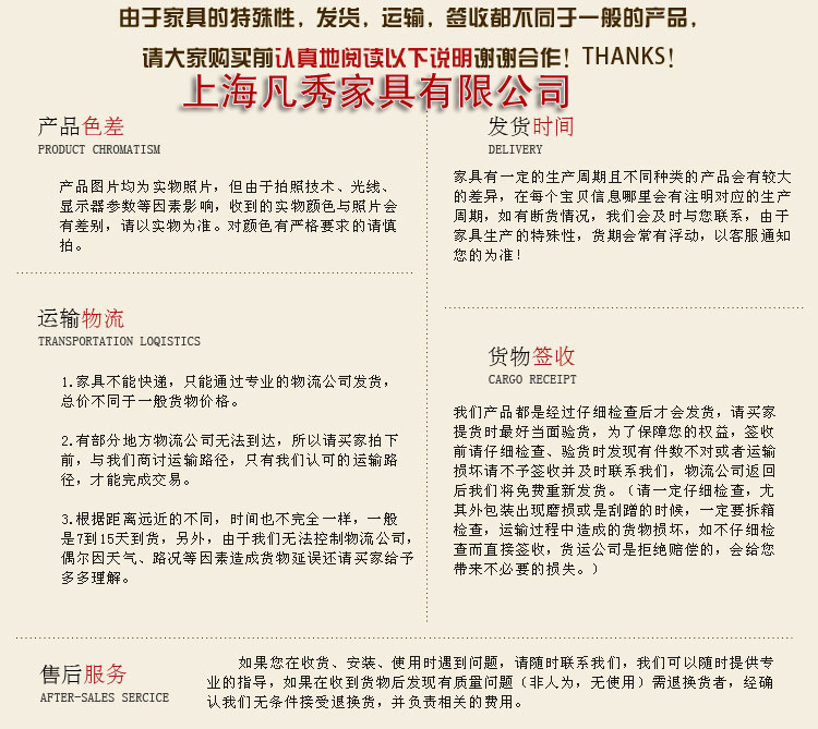 1.家具采用物流運(yùn)輸。我們根據(jù)客戶收貨地址,提供離客戶方便的物流公司;客戶也可以自己提供物流。
