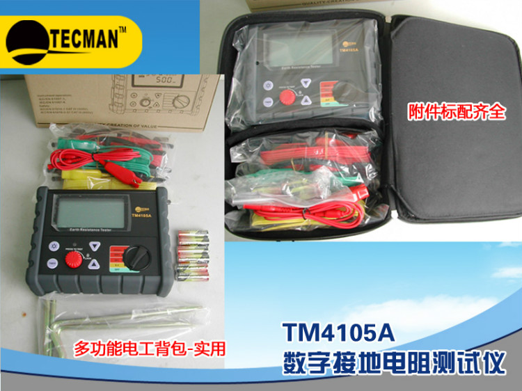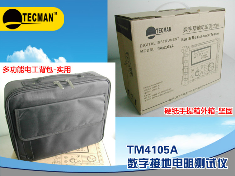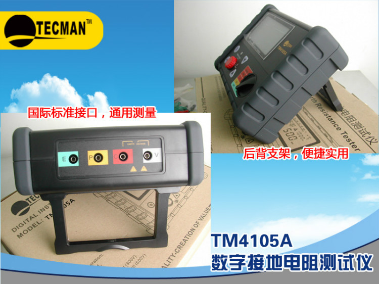 TM4105A是“TECMAN-泰克曼”品牌生產的多功能型數字式接地電阻測試儀,TM4105A接地阻值測量到2000Ω,并具自動減除線阻,電阻自動歸零,連續測量時間設定等功能。