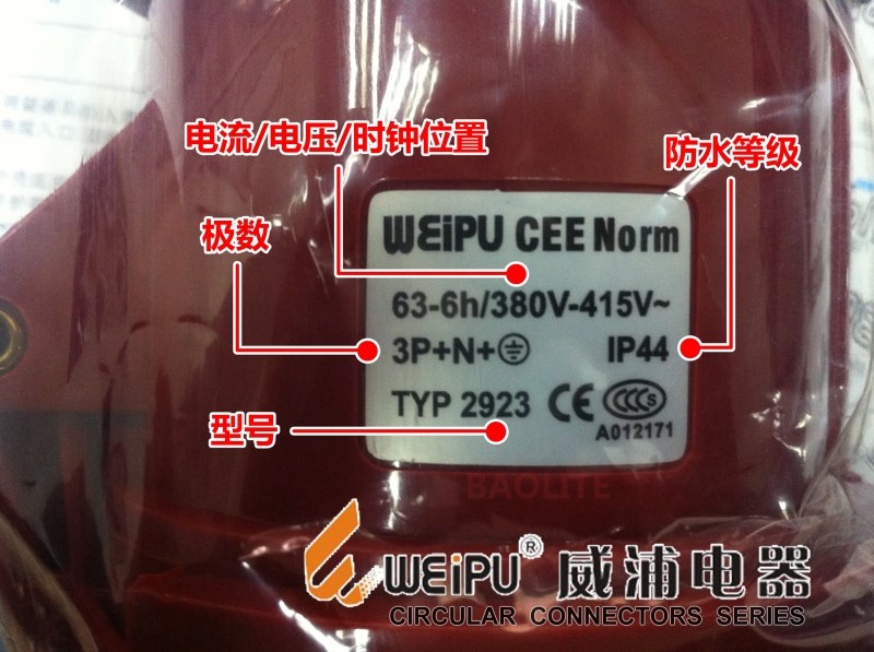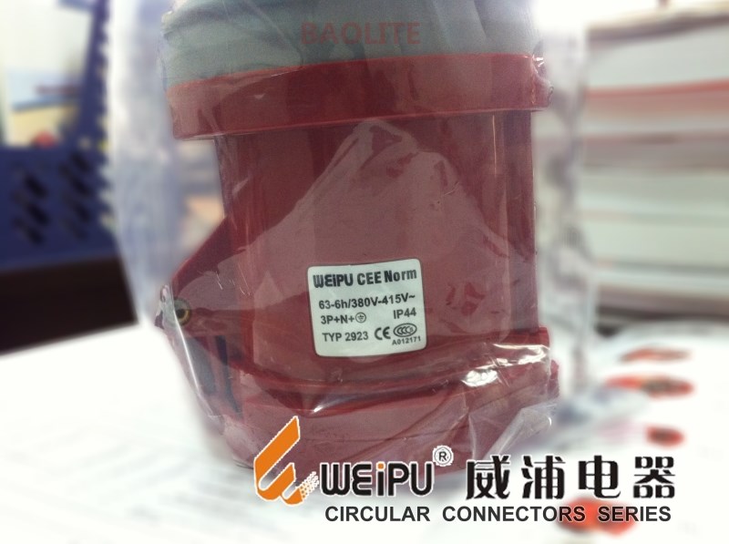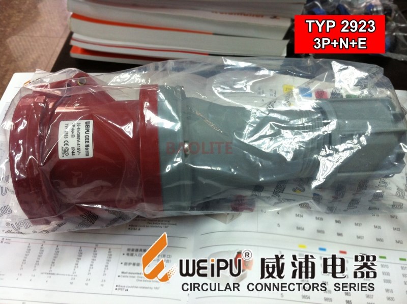 原裝正品威浦TYP 2923紅色工業(yè)插頭 防水63安5芯航空插 連接器