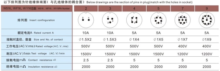 威浦WEIPU WS16 2芯-3芯-4芯-5芯開孔16mm 直式金屬航空插頭座