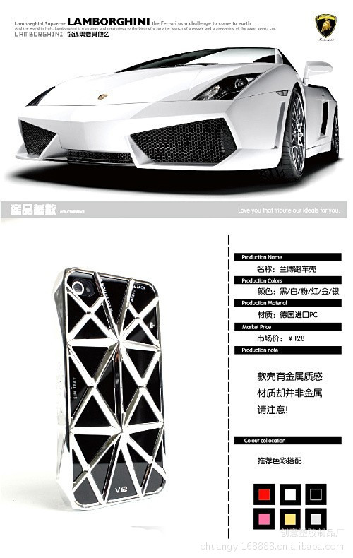 廠家直銷 新款 iPhone4G/4S 火爆 蘭博基尼 外殼/蘋果手機保護殼