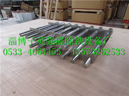 磁性過濾架是采用優質不銹鋼管和高B值稀土合金釹鐵硼,并采用特殊的制作方法制作而成。并將其組合在固定架上,構成磁性過濾架。當含鐵的物質通過時,受到磁力棒的吸引,將含鐵的物質牢固的吸附在管壁上,以保證設備的完好和產品的安全。