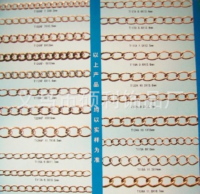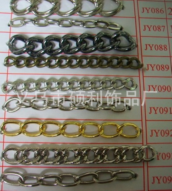 本廠專業生產鐵鏈.鋁鏈.銅鏈.不銹鋼鏈.珠鏈.萬字鏈.蛇鏈.側身鏈.磨鏈.雙織鏈.雙鉤鏈.手袋鏈.服飾鏈.錢包鏈.鑰匙鏈.花籃鏈.燈飾鏈.匙圈.皮帶扣.龍蝦扣.鑰匙扣.圈類.合金扣類.各類通用五金配件和金屬工藝品.廣泛適用于箱包手袋.服飾.鞋類.玩具.燈飾.家居用品.禮品.飾品.工藝裝飾等各種用途.歡迎各商家來電訂購.同行業有競爭能力. 本公司實力雄厚,以品質謀發展,以技術求生存,歡迎廣大客戶來電咨詢、打樣、訂貨。