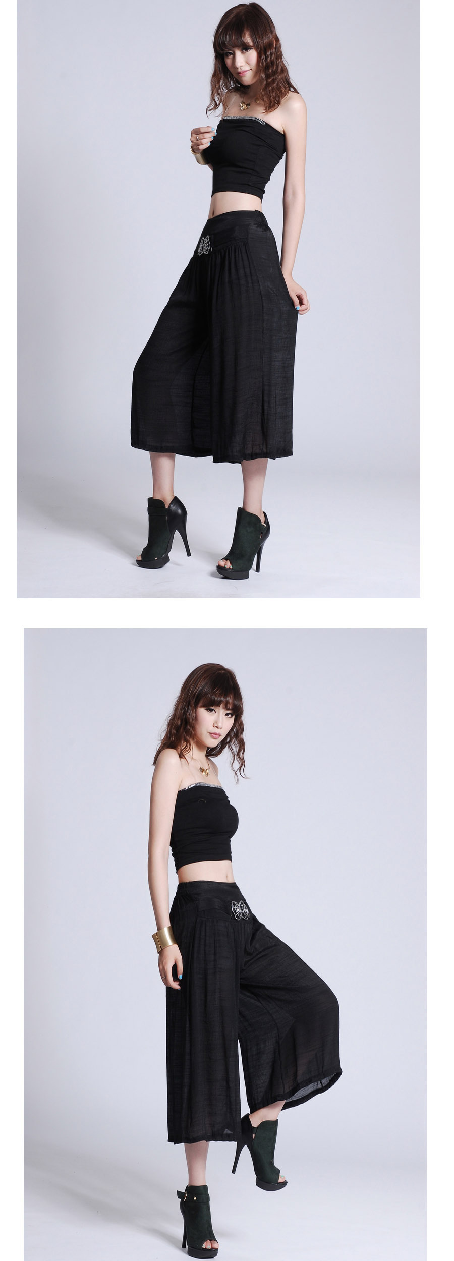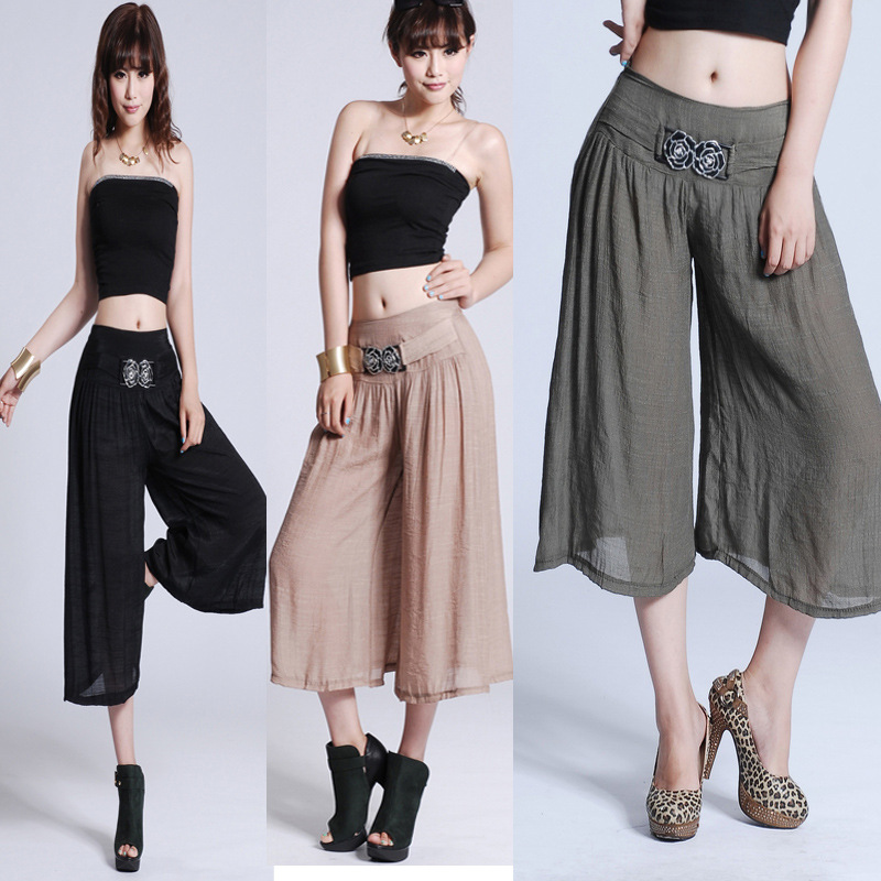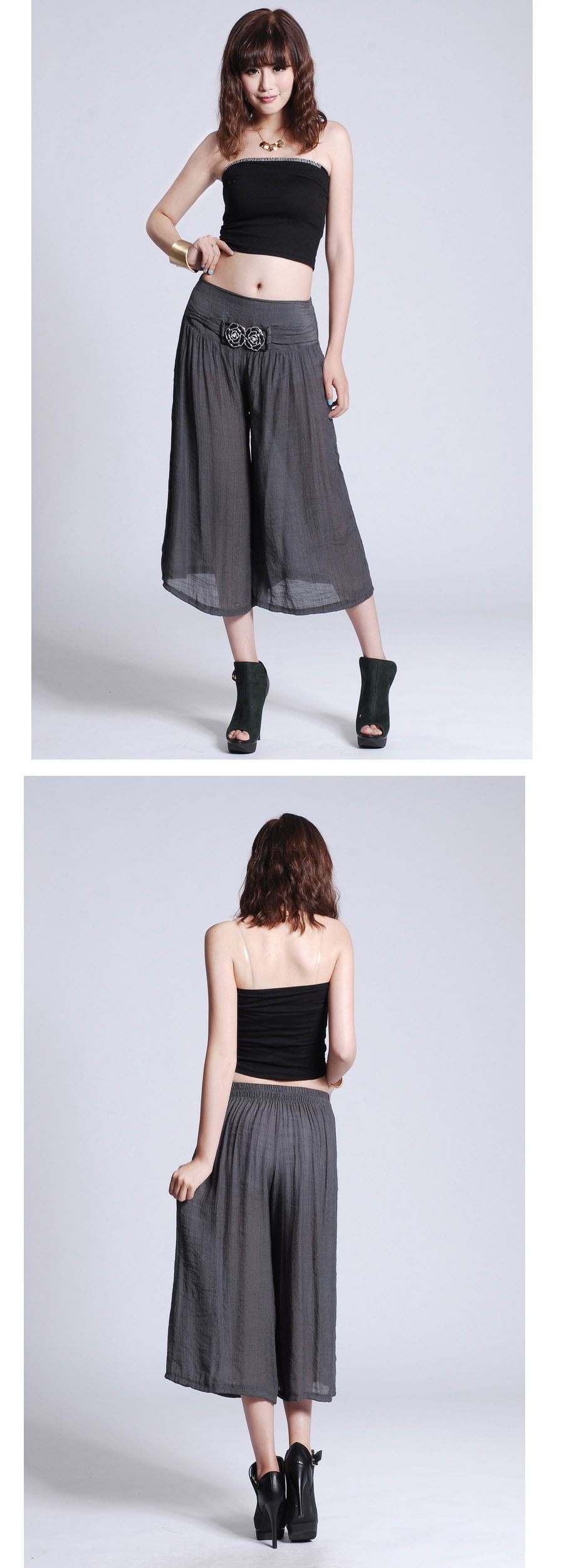 此寶貝特點就是溥而寬松,穿著時尚舒服透氣,面料也是很不錯的棉加麻好面料.寶貝簡單大方適合的年齡跨度很大,只要是成年女性朋友都好穿 產品簡要介紹:清涼夏季 超薄冰絲棉麻闊腿七分褲 裙褲/七分褲裙 休閑燈籠褲
