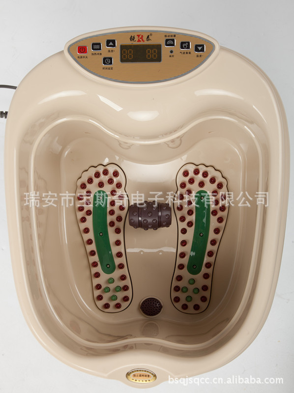 2. 此保[jian]足浴器是根據腳的穴位分布和骨骼的結構而設計,適合各種腳型。其功能選擇開關可選擇不同的按[mo]功能。按[mo]功能有效地按[mo]各個部位;熱水循環按[mo]腳部,使腳部可享受熱水浴;紅外線按[mo],促進血液循環。