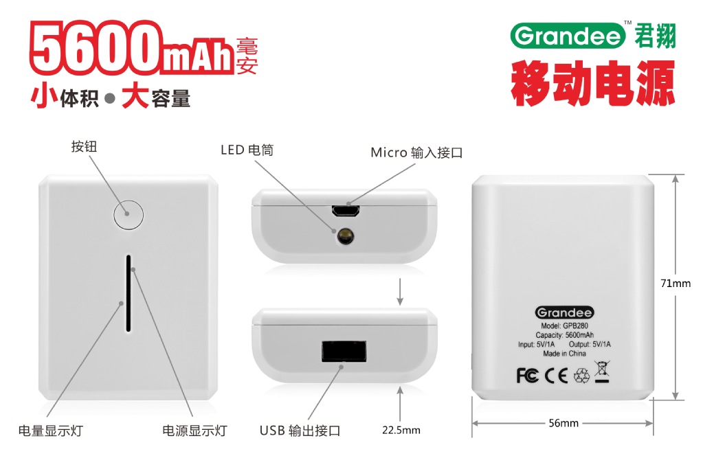 內(nèi)置原裝進口(韓國三星)充電池,100% 確保5600毫安充足電量!