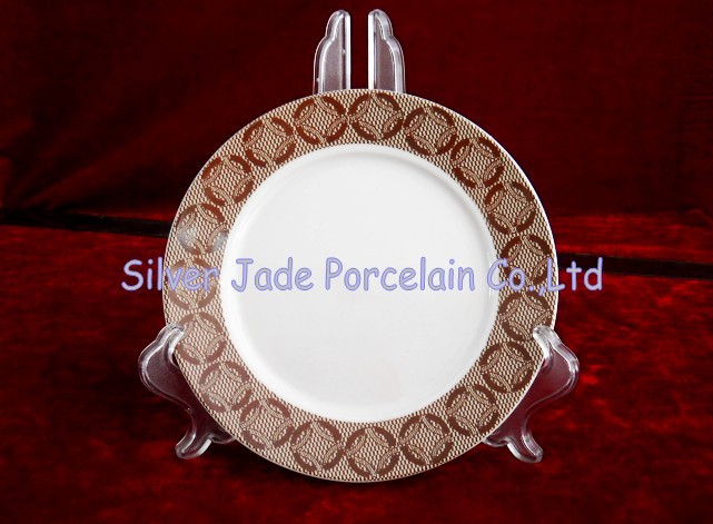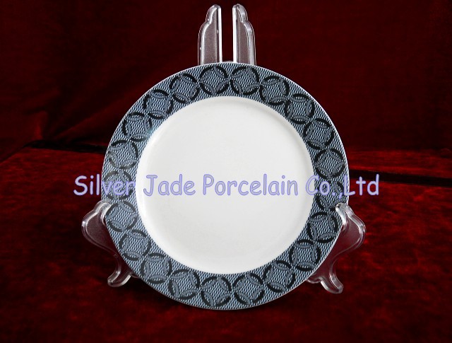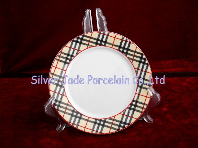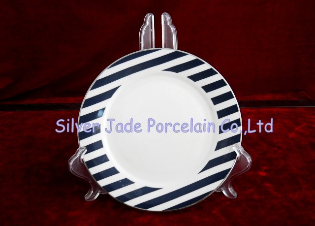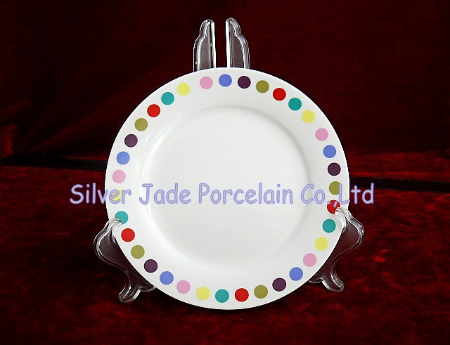 7 寸幾何圖形貼花陶瓷盤,陶瓷點(diǎn)心盤,陶瓷平盤