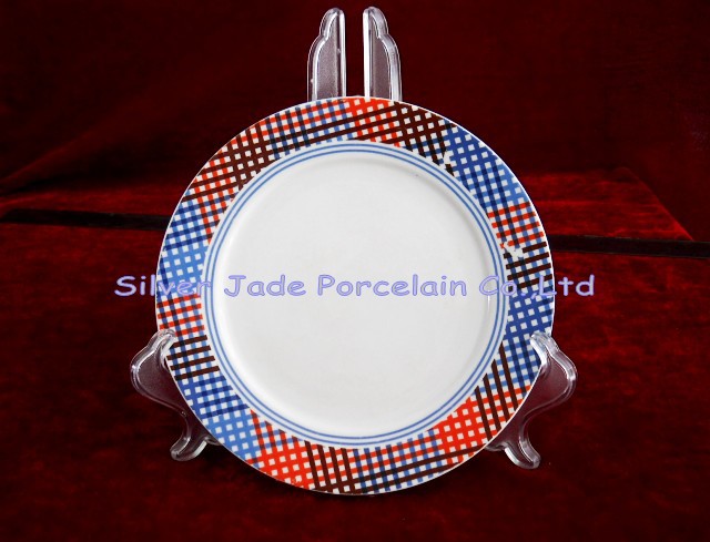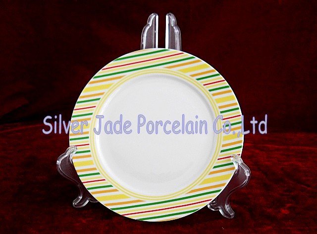 廠家直銷 7 寸幾何圖形貼花陶瓷盤子,點(diǎn)心盤子,平盤子