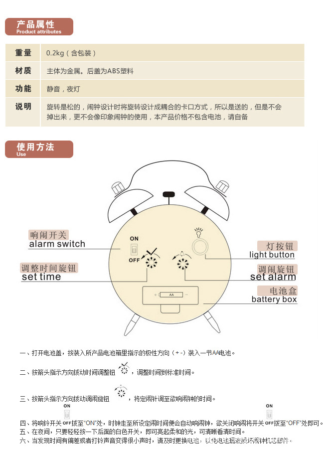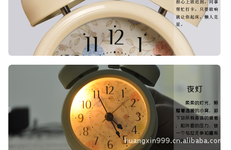5.獨特新穎的表盤設計突破傳統造型讓你賞心悅目,觸手可得的鬧鐘新寵眾多種款式適合不同年齡不同愛好的消費群,適合擺放在睡房,客廳,床頭柜,書房。