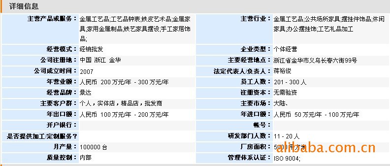 我司位于中國的小商品市場義烏,主營鐵制工藝品及鐵制家具等,公司本著“工藝化生活,生活工藝化”的原則,為您提供兼具實用性和工藝性的產(chǎn)品。我們愿與您共同成長,價格實惠,起訂量低,題材更多更新穎,是您創(chuàng)業(yè)進貨的來源和保證。