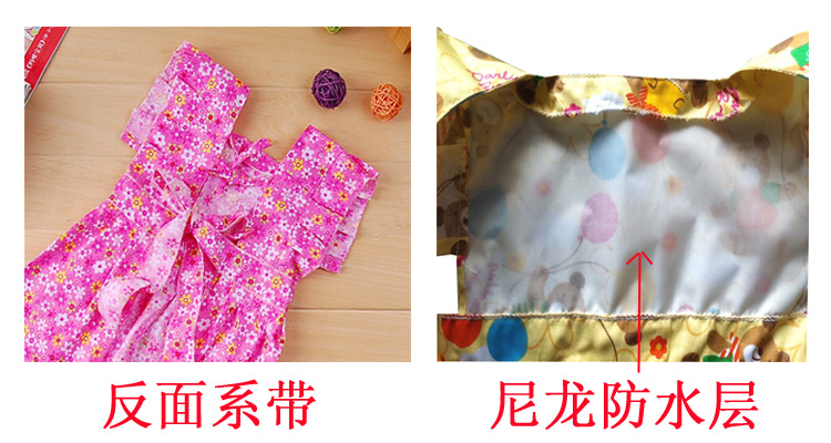 本產品根據寶寶日常飲食生活等特點而設計,外觀美麗、可愛又經濟。可防止衣物弄臟減少細菌傳染。寶寶幼小時還作小裙子穿喲,很實惠的。