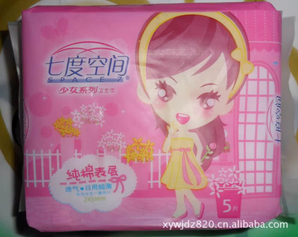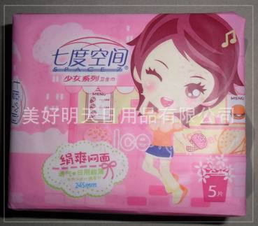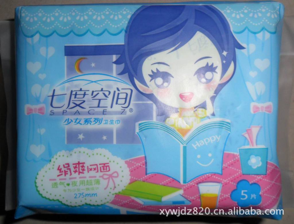 七度空間衛生巾批發QSC7205娟爽網面超薄夜用5片,48包*5片
