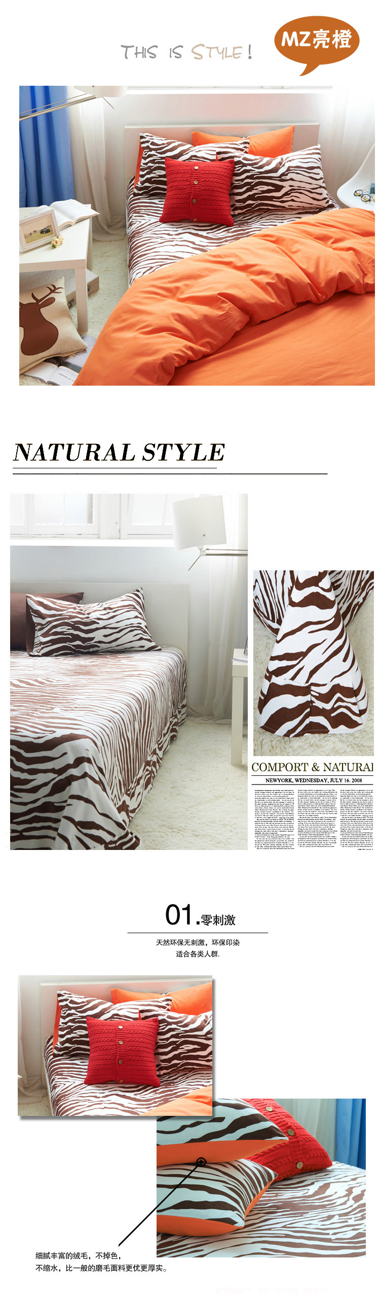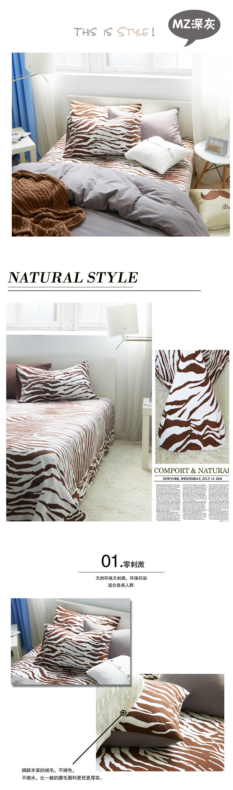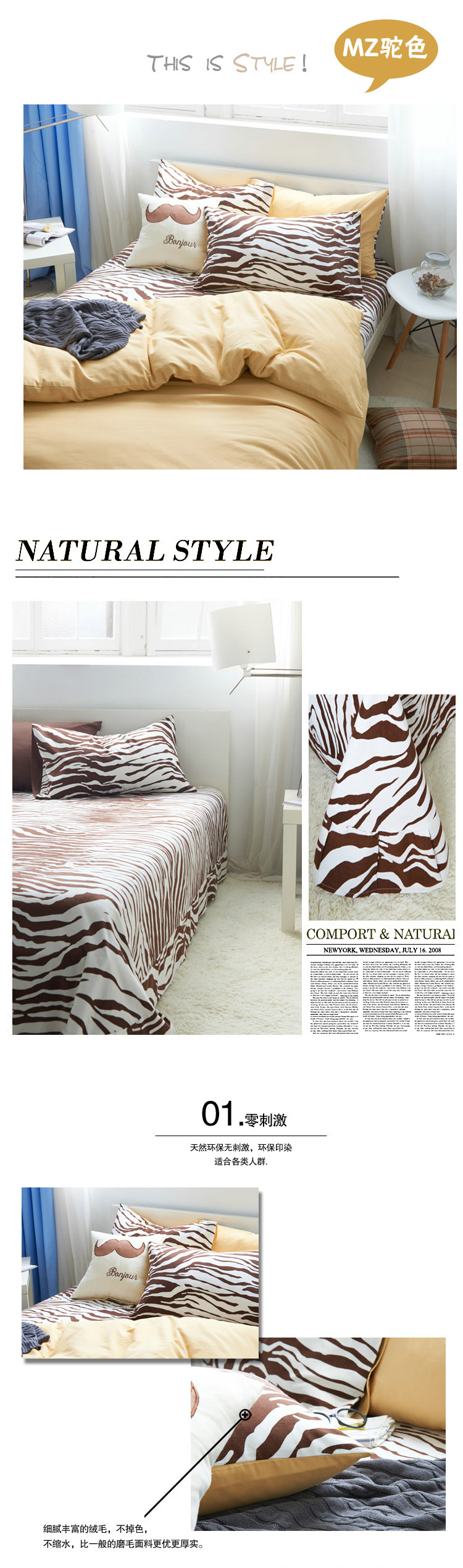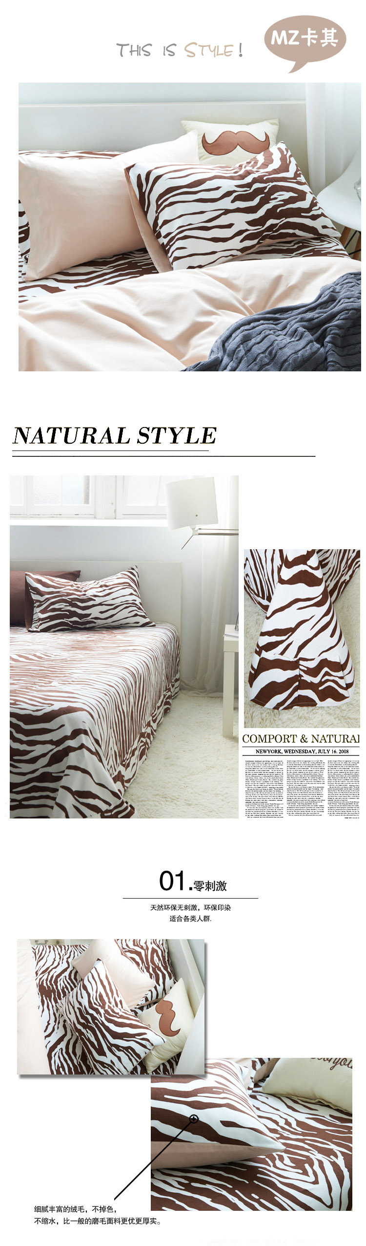MZ咖啡色斑馬紋21支全棉磨毛四件套