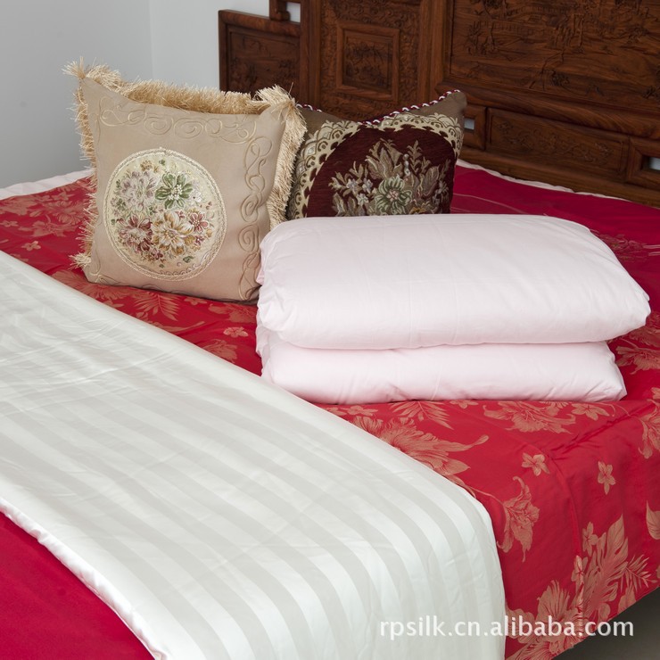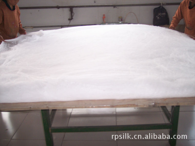 蠶絲被由絲綢或全棉面料作內(nèi)被套,而被芯由精心選擇出來(lái)的合格蠶繭手工拉制,可以不用一針一線就保持內(nèi)胎的形狀,100%桑蠶絲被。