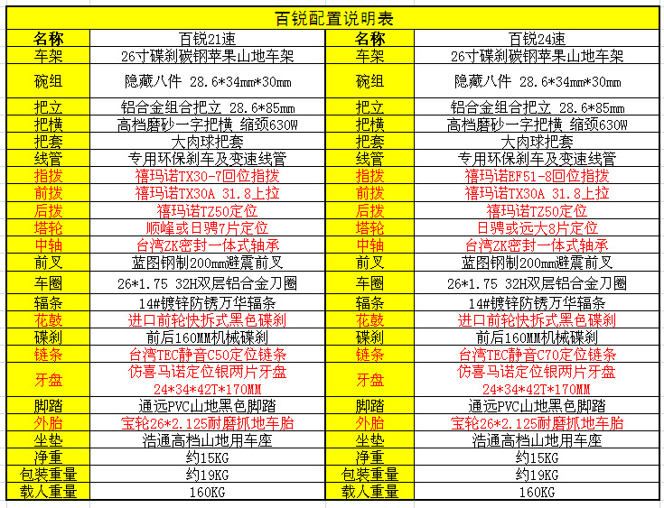 百銳21速有四色:白藍,白橙,黑紅,黑金,下單請備注顏色!