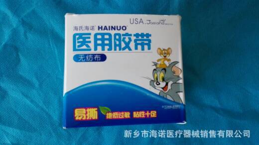 醫用膠帶是以織物薄膜或紙為基材,上附高分子醫用膠粘膠組成。具有粘附力強,易揭脫的性能。