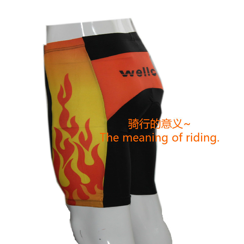 3、衣服面料為100%滌綸 吸濕排汗 .褲子錦綸 萊卡面料配加厚硅膠護墊2.3CM