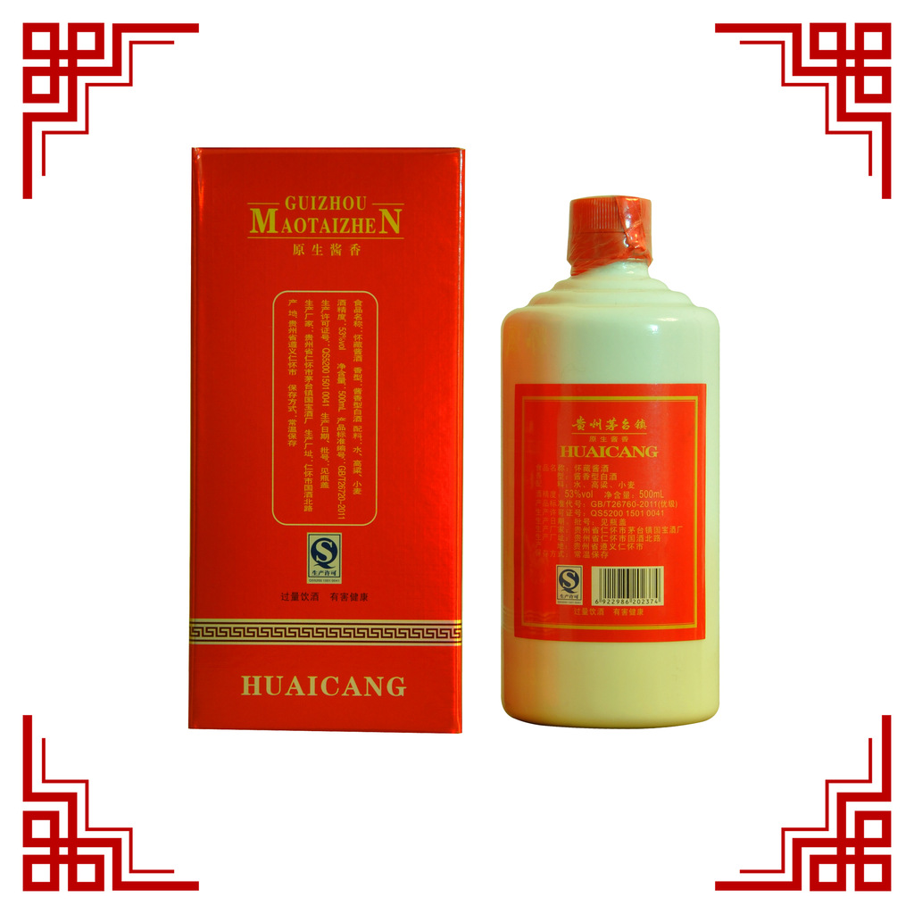 茅臺鎮醬香型白酒生產系以當地優質高梁為原料,用小麥制成高溫曲,而用曲量略多于原料。釀酒所用水源則取自于赤水河已經融入土壤層中多種對人體有益的微量元素的優質水。