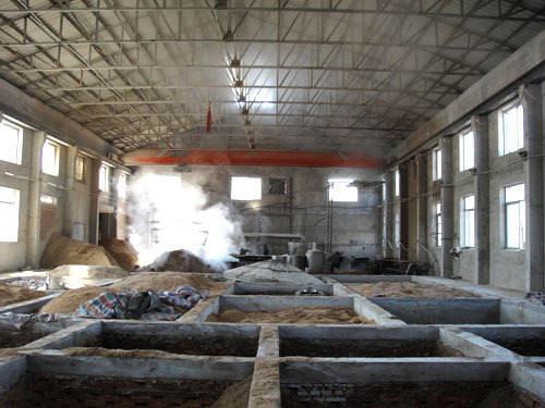 八次發酵――清蒸下沙一次,混蒸糙沙一次,熟糟→上甑蒸酒六個輪次循環過程中有六次封窖發酵,每加曲入窖發酵一個月,共八次發酵。
