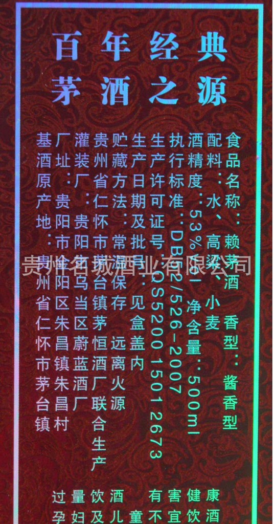 生產(chǎn)廠家:貴州省仁懷市茅臺鎮(zhèn)茅恒酒廠