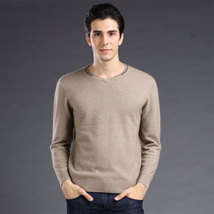 >熱銷寶貝阿里價250.00冬裝新款男士長袖V領羊毛衫純色100%貂絨衫羊絨衫打底保暖衫"/>