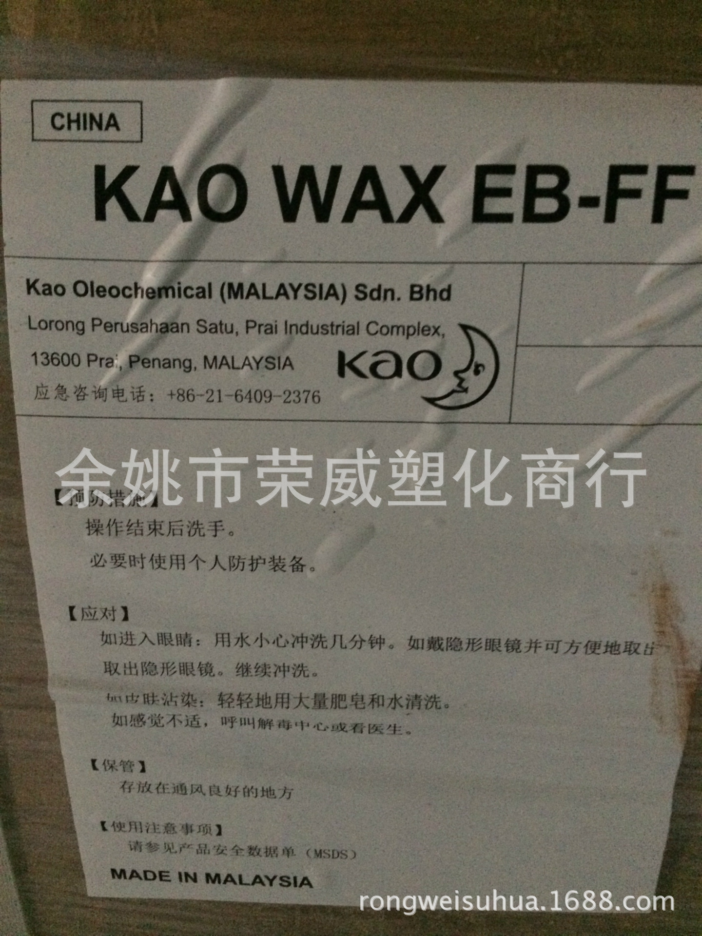 KAOWAX EB-FF是蠟狀的乙撐雙硬脂酸酰胺EBS,其具有高的熔點,并在熔融狀態時保持低粘度。在高溫熔融態時,與樹脂和溶劑有良好的相容性。