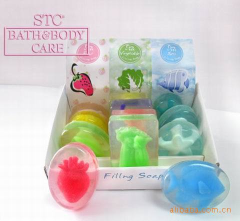夾心皂采用優(yōu)質(zhì)原料及特殊工藝精制而成,晶瑩剔透。