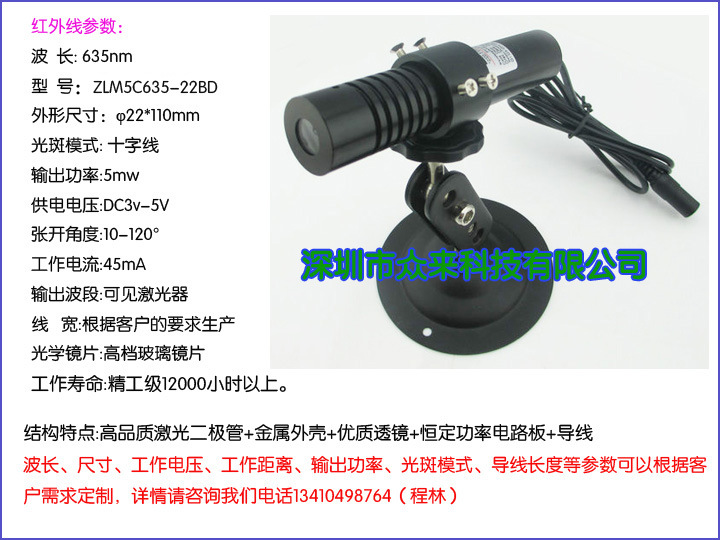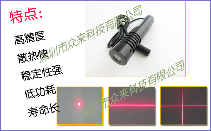 該款產品采用進口圓柱形玻璃十字鏡片和激光二極管,外形尺寸增大,散熱快,壽命長。紅線細且均勻,準直性及穩定性非常高。出光口處加了玻璃窗,可防塵。在室內(非太陽下)打出來的紅線長3米以上,安裝高度1米——3米都可以使用。起到定位準直的作用,大大提高工作效率。