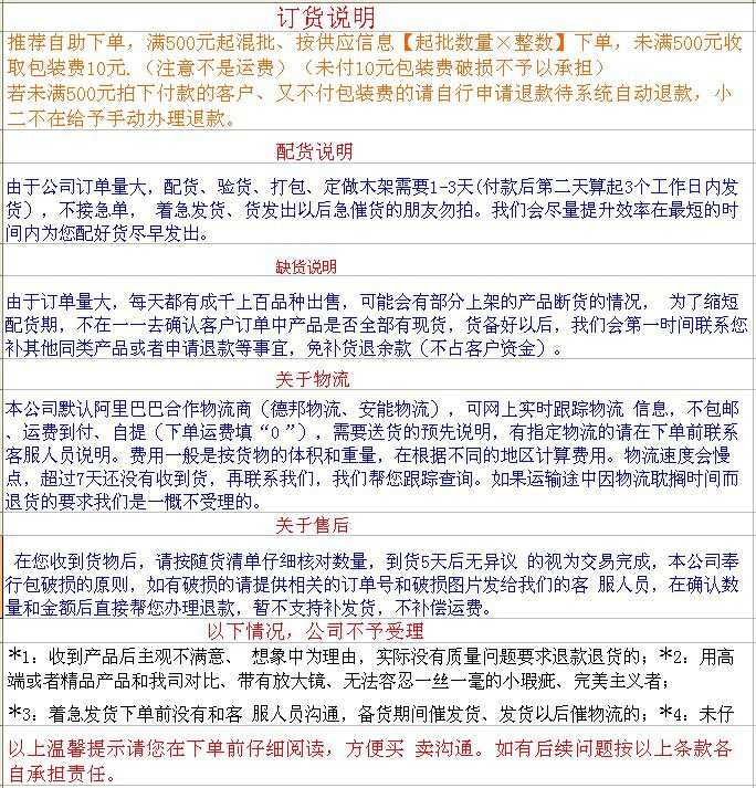 1:批發產品按供應信息標的少數量起定,沒有金額限制。