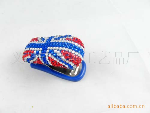 國旗迷你訂書機 貼鉆漸變色訂書機 鑲鉆辦公用品