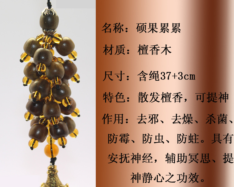 檀香木雕刻出來的工藝品更可謂珍貴無比。家中擺放芳馨經久。檀香木置于櫥柜之中有熏衣的作用,使你的衣物帶有淡淡天然高貴的香味。能驅邪避小人,提高你的親和力,有助你的事業。