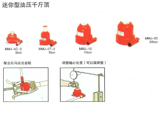 安裝重物時,微量調整位置等,非常方便。超小型油壓千斤頂。