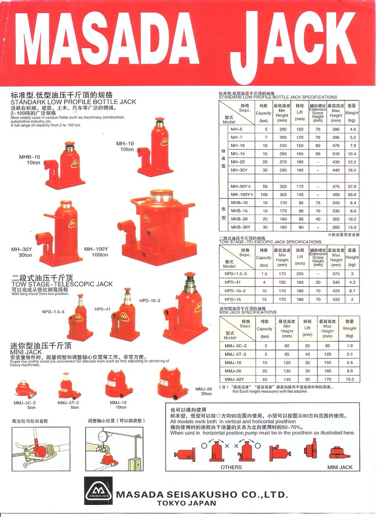 供應原裝進口 日本馬沙達MASADA JACK 迷你型油壓千斤頂