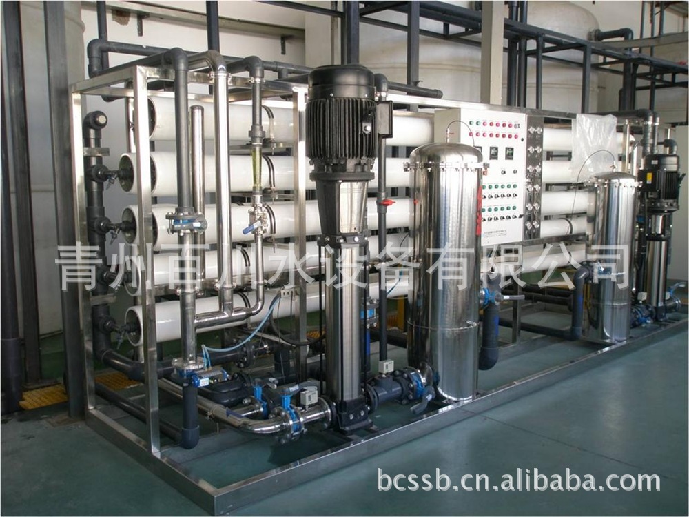 作為純凈水生產的依托是非常重要的。所以要生產純凈水一定是要選擇原水水質比較好的地方。如山泉、深井等。在這里牽扯到一個非常重要的指數就是“電導率”。一般而言電導率,越低。水越純凈。現在采用的水處理工藝都是采用的反滲透系統。經過處理后的水一般能達到90%——99%的脫鹽率。下面我介紹一下這個系統的組成部件。