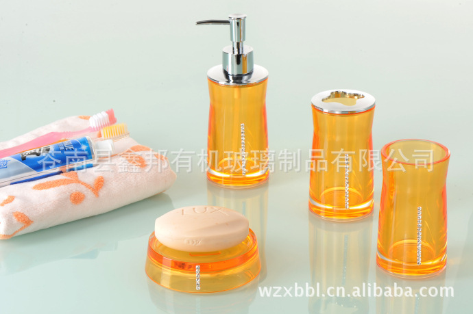 亞克力衛(wèi)浴四件套系列材料采用透光性極強的壓克力(俗稱有機玻璃,英文縮寫:PMMA),通過進口注塑機注塑而成,外表光滑,光澤瑩潤,外觀新穎。質優(yōu)、別致和實用的特點,瞬間將您乏味、單調的衛(wèi)生間變成時尚的,是現(xiàn)代家庭的理想選擇。產品暢銷國內并遠銷歐美、東南亞。歡迎新老客戶垂詢!