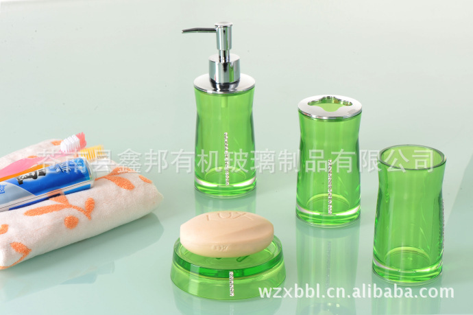 進口亞克力 加厚高檔衛(wèi)浴四件套 鑲鉆透綠
