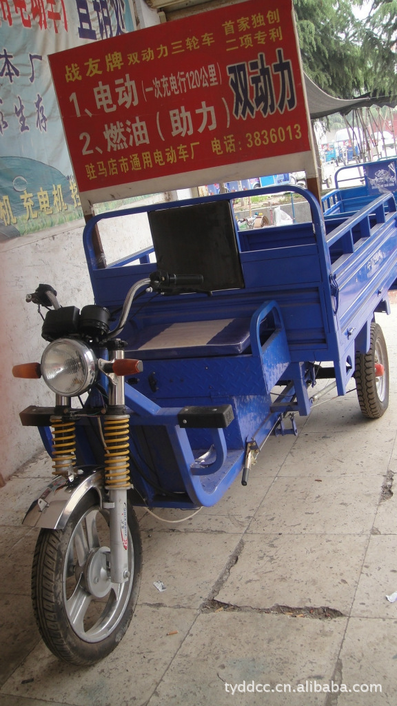 駐馬店市通用電動車廠是一家民營企業i,建于2005年,專業致力于電動三輪車的設計、研發于制造。自主生產車架、車箱。多年來我廠誠實守信、開拓創新的精神,廣泛吸取國內外的先進技術研制出;性能可靠,技術先進的混和動力三輪車、。現正研究太陽能多用途混和動力三輪車。是你理想乘運拉貨的好選擇。