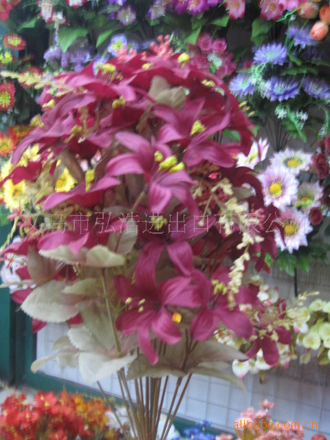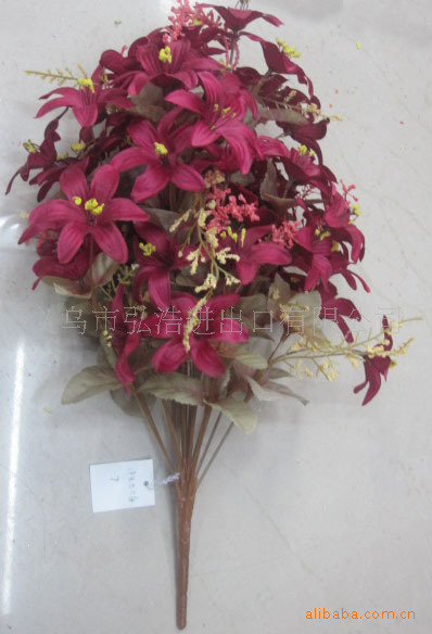 仿真植物 塑料百合花 18叉(54頭)百合花 多色 外貿、批發