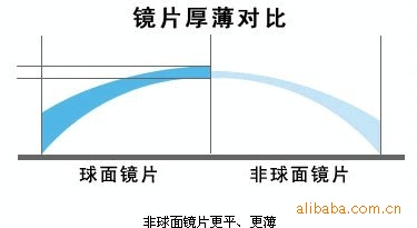 傳統的球面鏡片,鏡片周邊看物體有扭曲的現象,限制了配戴者的視野,在科技不斷進步的時代,非球面設計這一光學奇跡,將鏡片邊緣像差減到底,使它寬闊視野可以滿足顧客的需求。非球面鏡片的表面弧度是非球面設計的,這種設計比起球面設計鏡片的優點是: