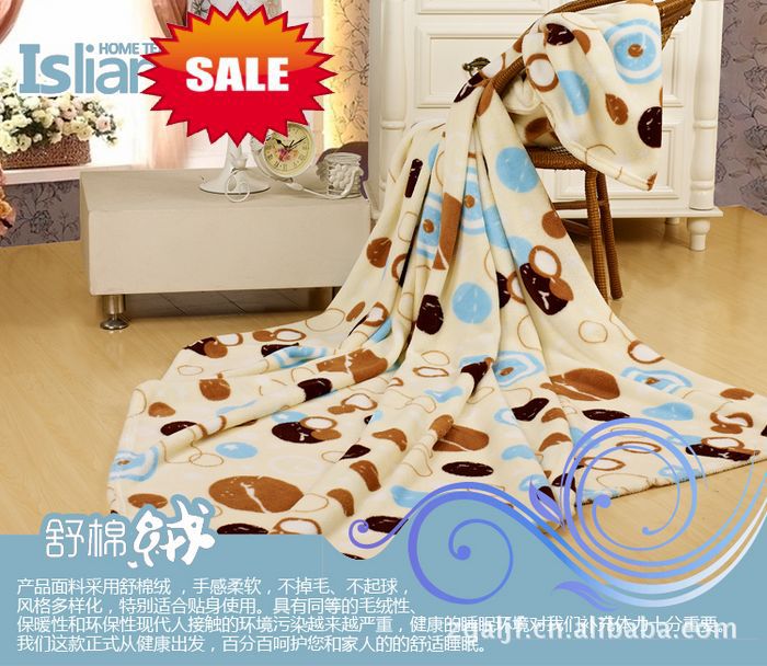一般1.5*2.0米的毯子用在1.5米以下床,1.8*2.0的毯子用在1.5米床上,2.0*2.3的毯子用在1.8米的床上,總之買毯子要買比床大點的哦。毯子機器裁剪的時候會沾上浮毛,收到毯子后先放洗衣機洗后在用哦!