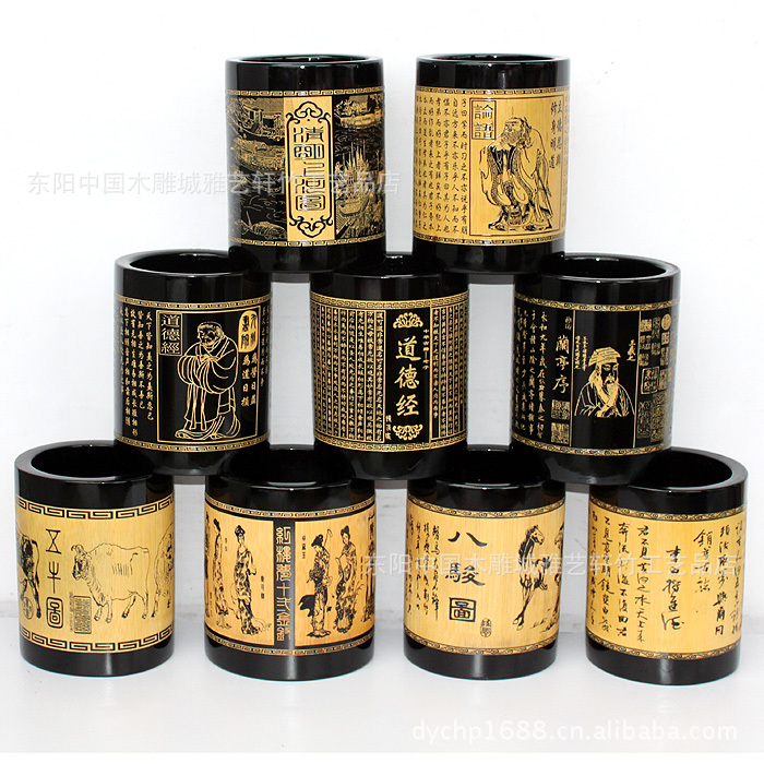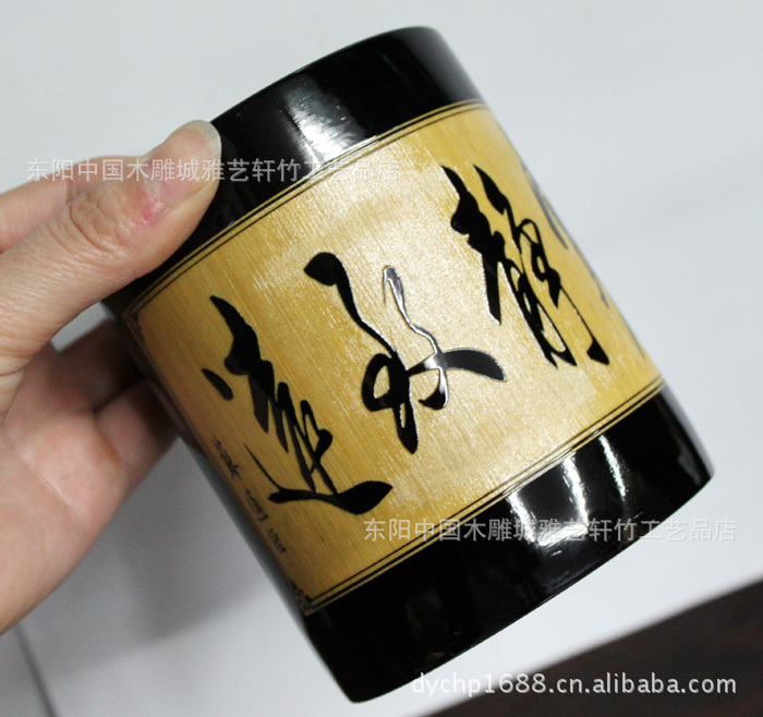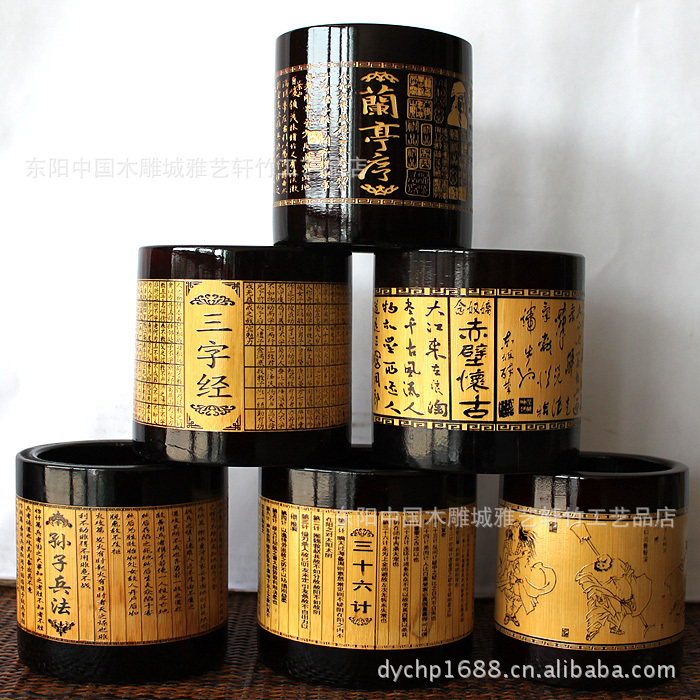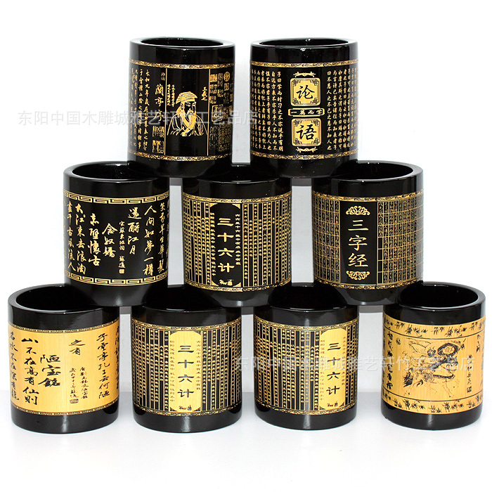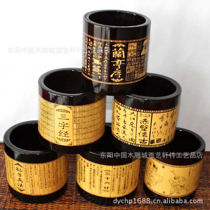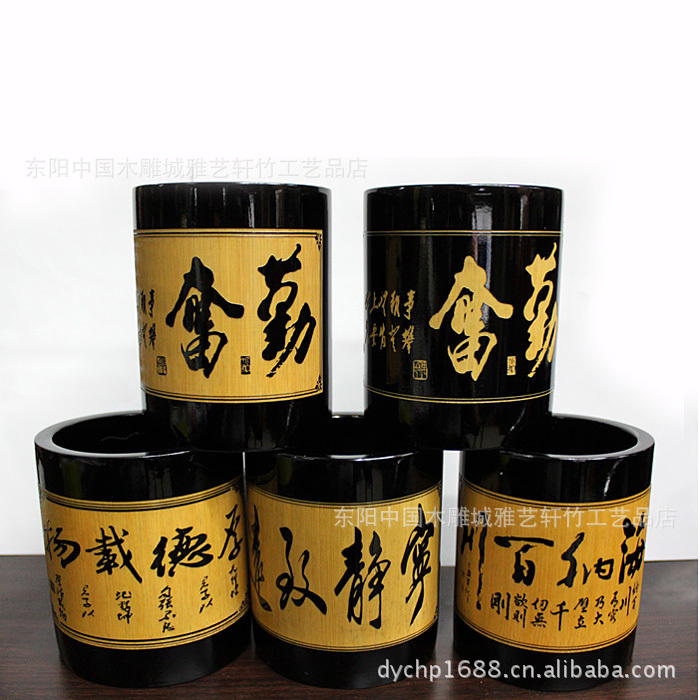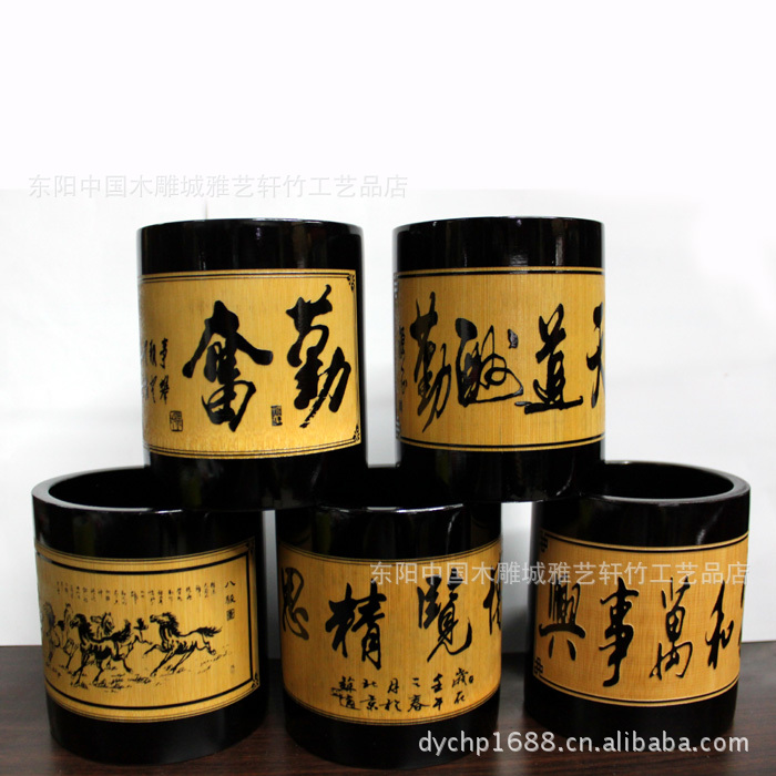 竹筆筒批發/黑色筆筒/文房用品/可定做/可印LOGO